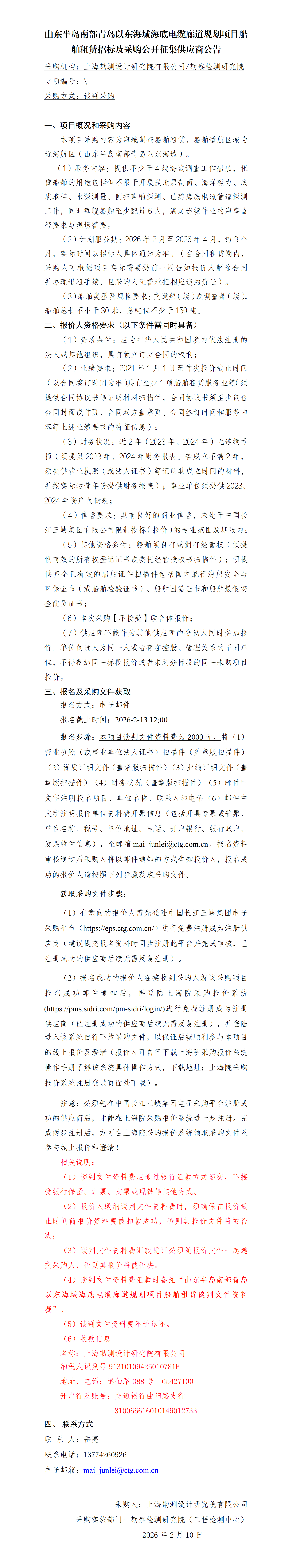 山東半島南部青島以東海域海底電纜廊道規劃項目船舶租賃
